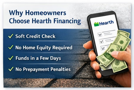 You still work directly with Consumer First Roofing for your project. Hearth and its lending partners simply give you more ways to pay.