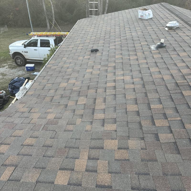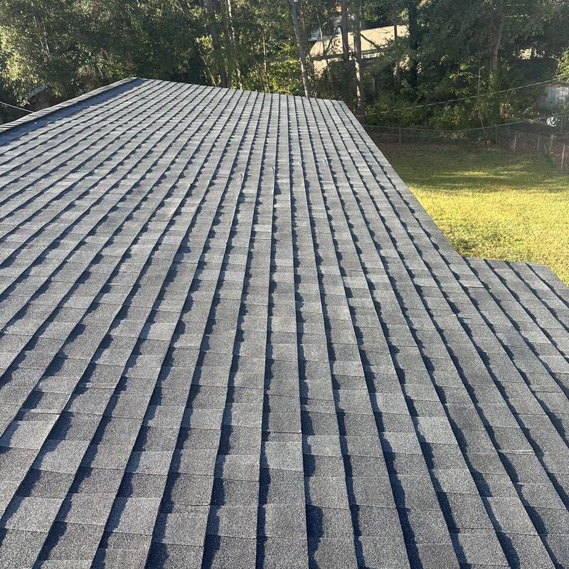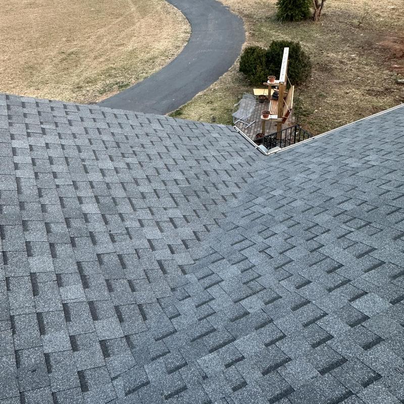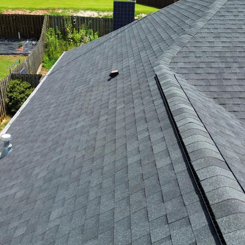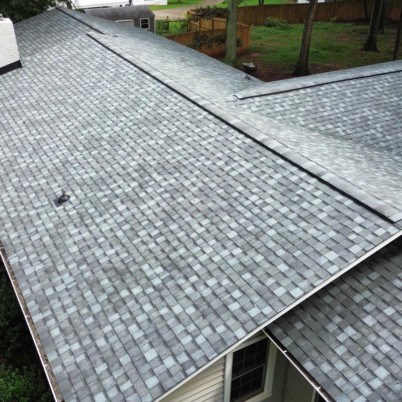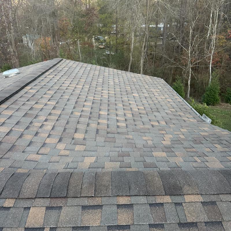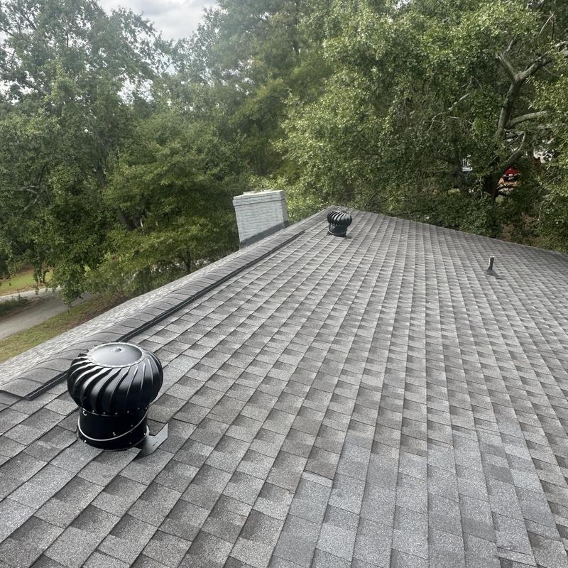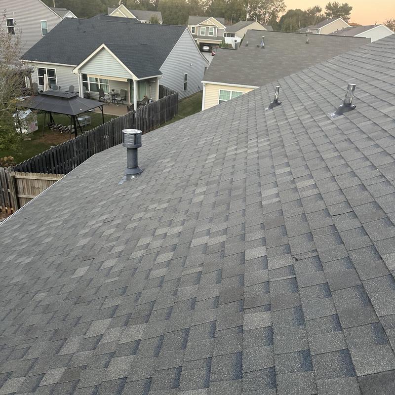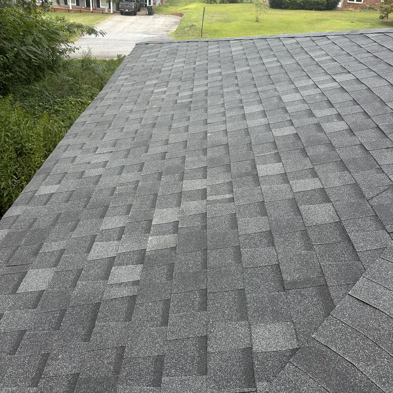 Consumer First Roofing completed a full roof replacement in Greenville, South Carolina. The team installed 30-year architectural shingles after the roof sustained damage from Hurricane Helene. Insurance covered the replacement cost following an inspection.