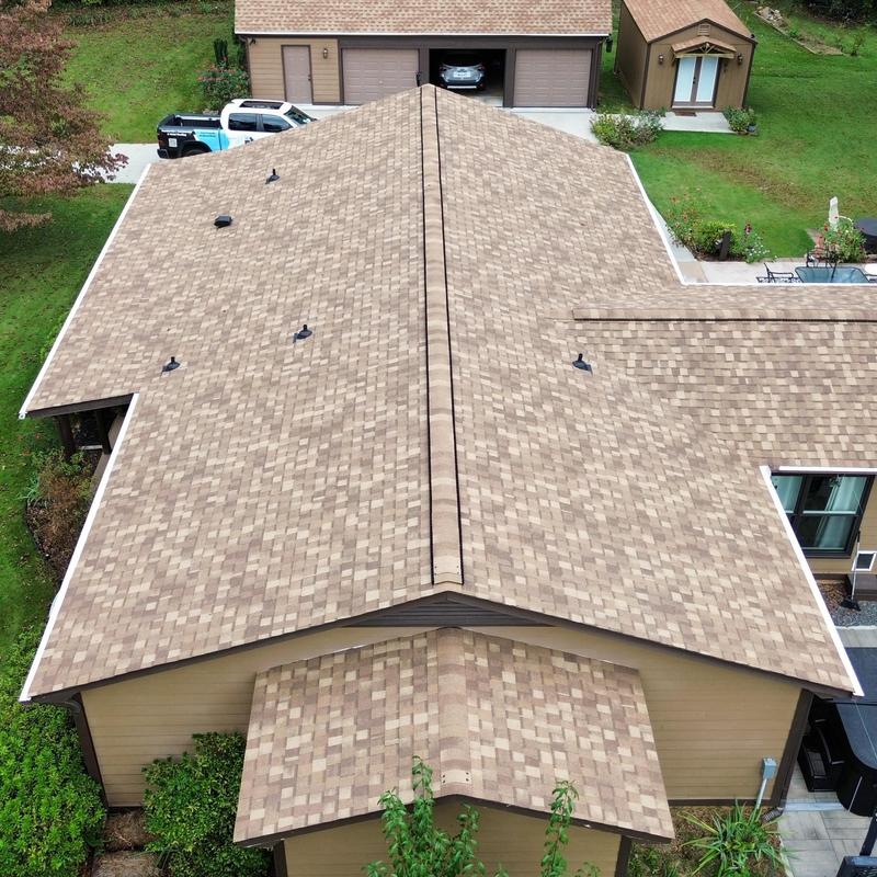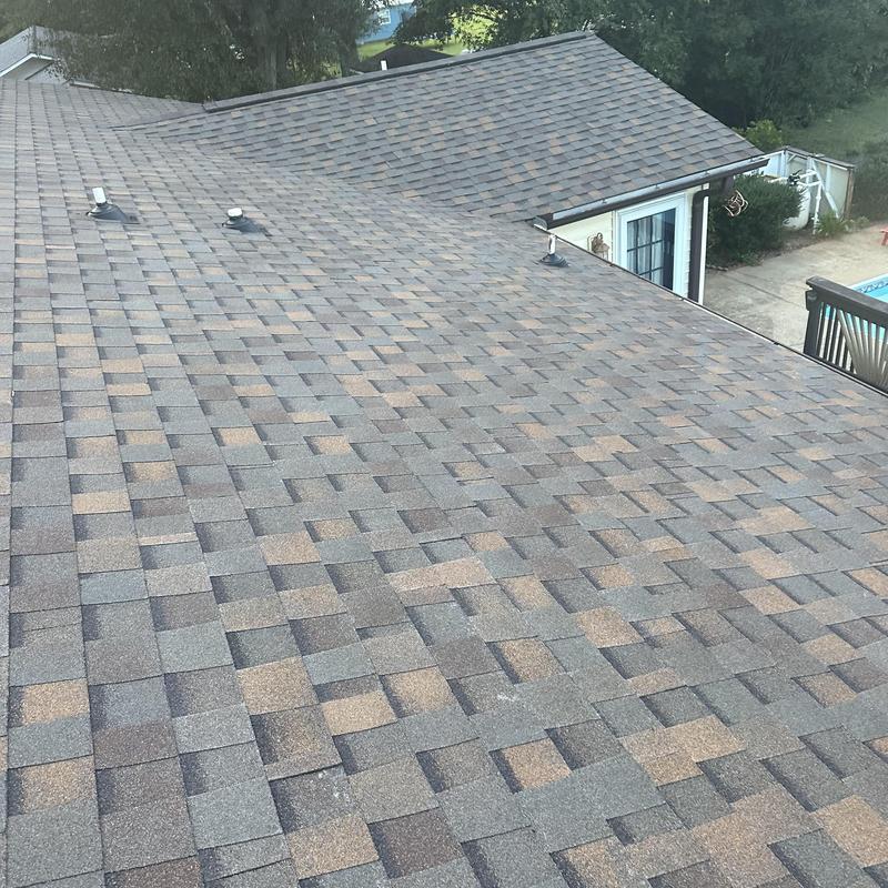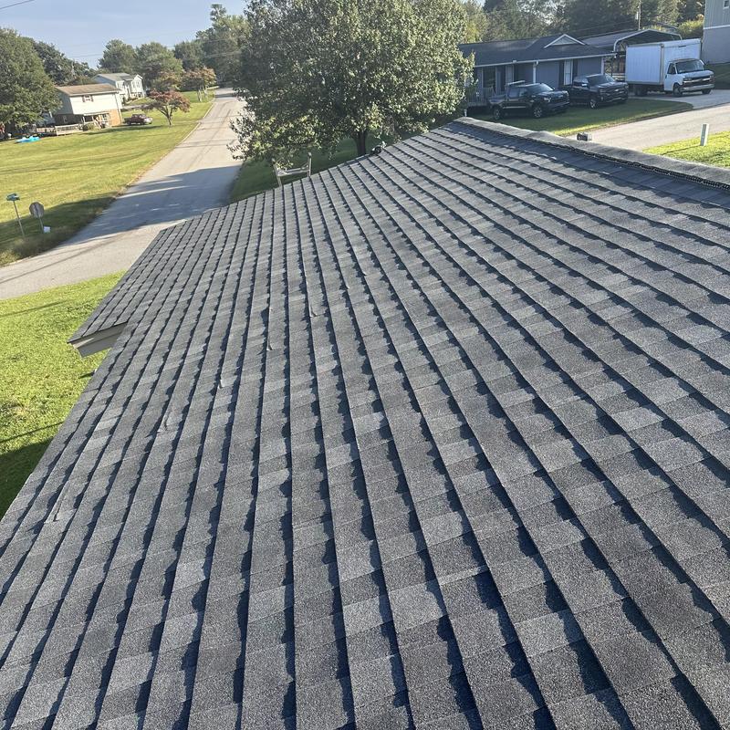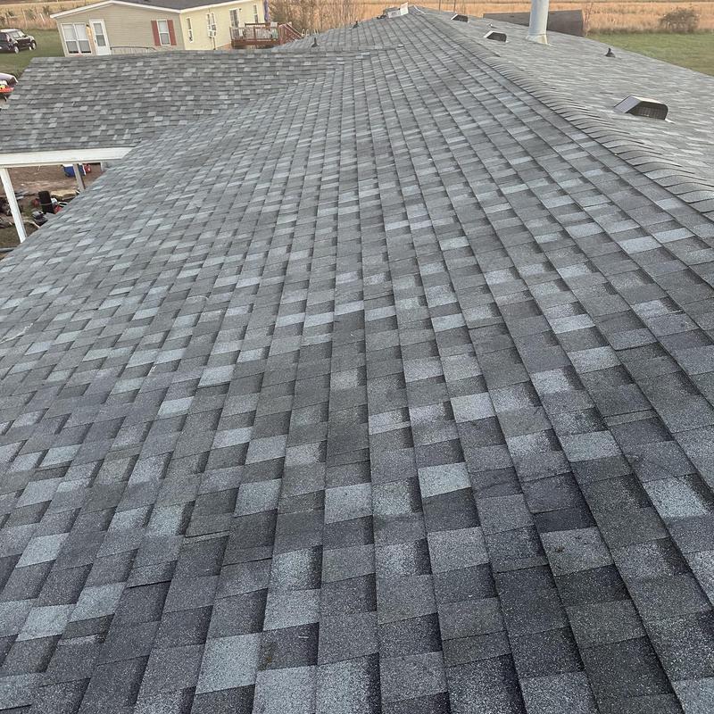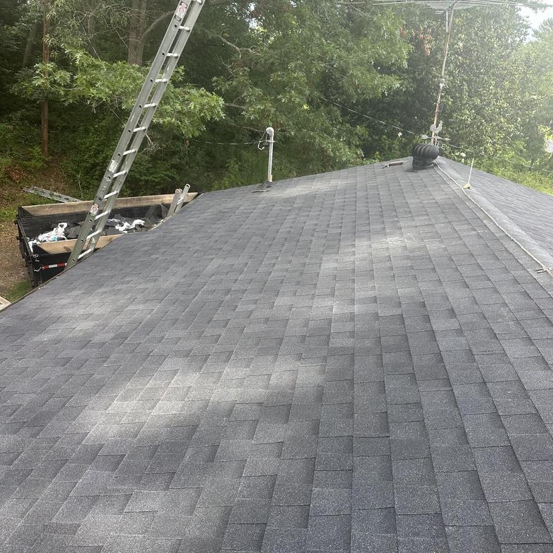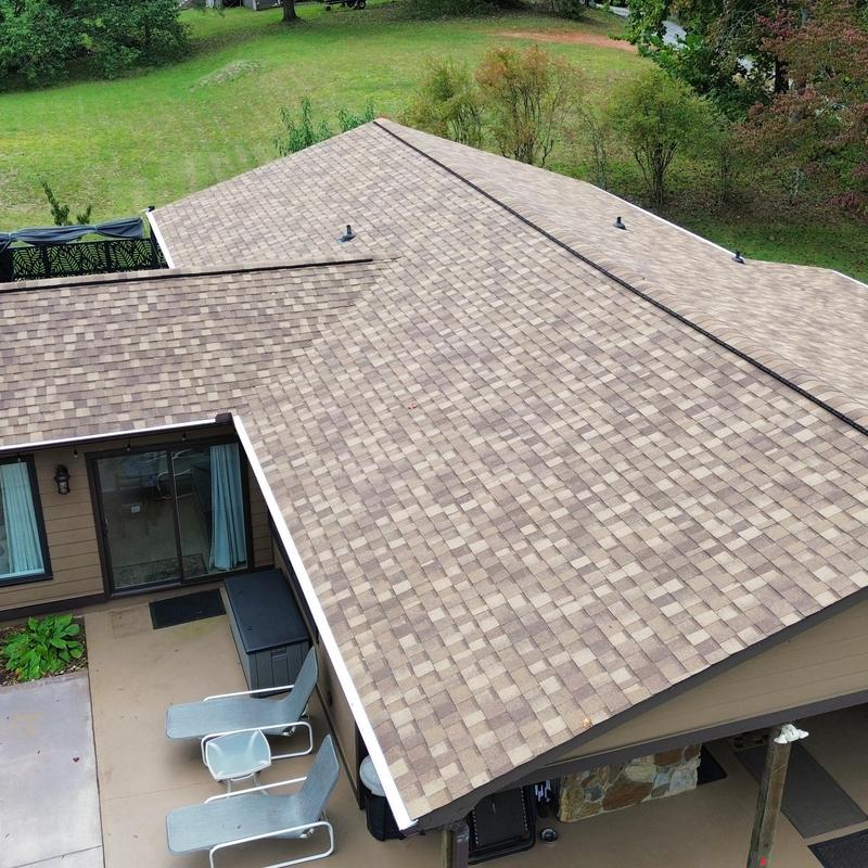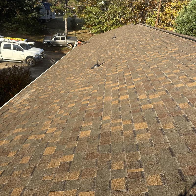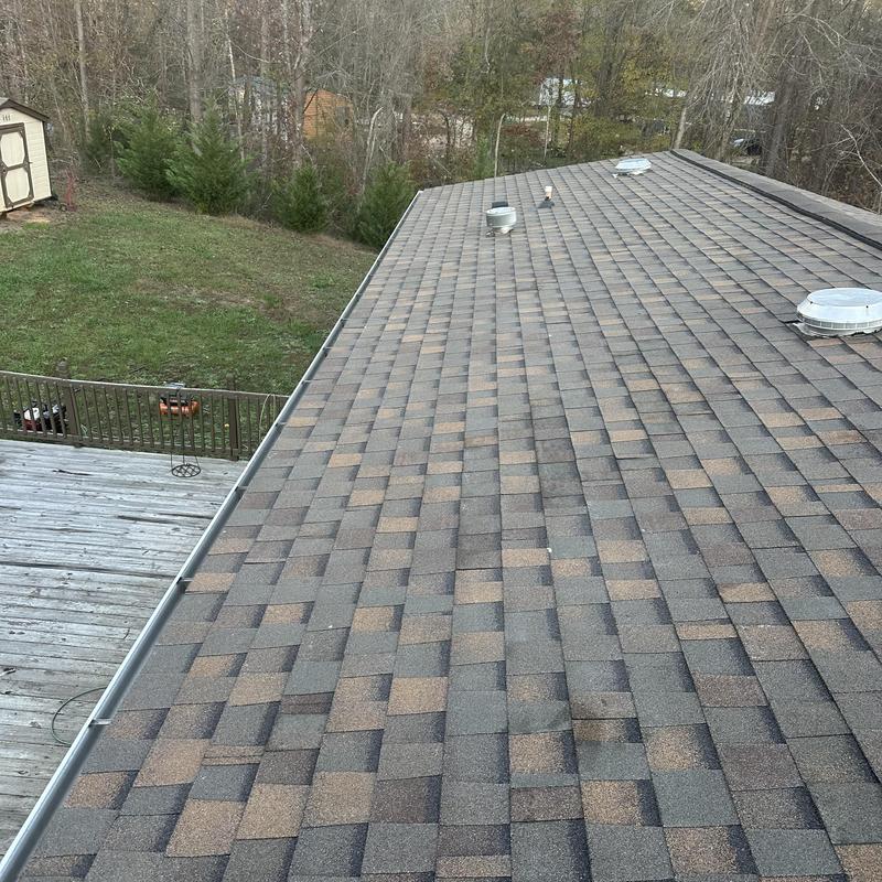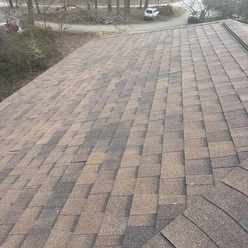 Consumer First Roofing completed a full roof replacement in Greenville, South Carolina. The team installed 30-year architectural shingles after the roof sustained damage from Hurricane Helene. Insurance covered the replacement cost following an inspection.