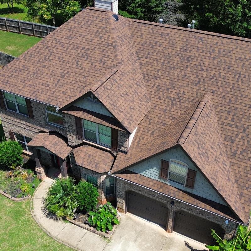 Consumer First Roofing replaced a storm-damaged roof with 30-year Atlas Pinnacle architectural shingles in burnt hickory. The replacement followed hurricane damage and was covered by insurance. This roofing project took place in Spartanburg, South Carolina.
