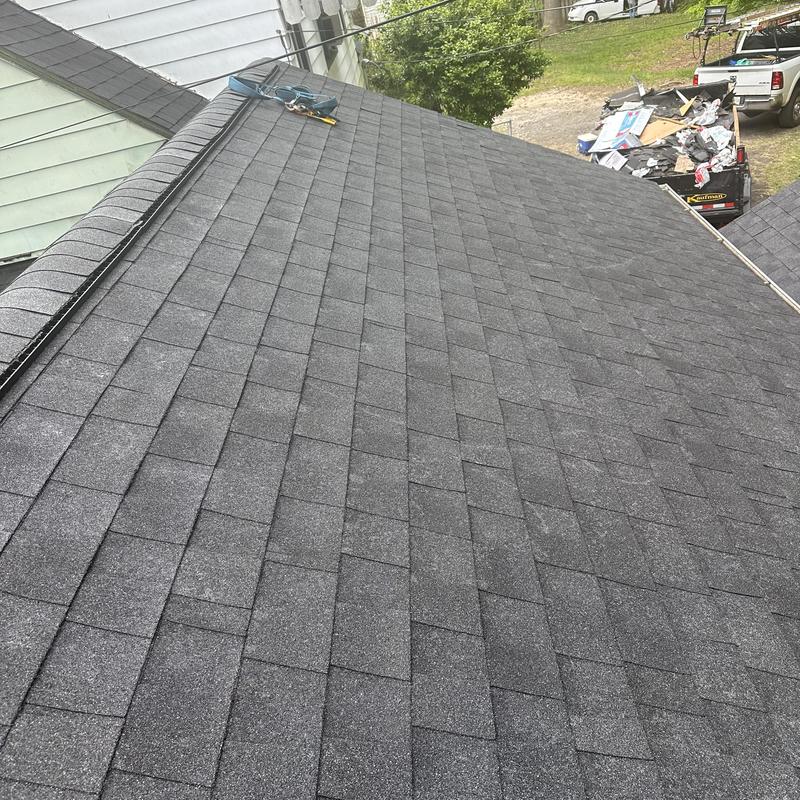 Consumer First Roofing completed a full roof replacement in Easley, South Carolina. The project used black Atlas Pinnacle architectural shingles and was finished in one day. The crew removed the existing roof and installed the new shingles efficiently, ensuring a clean and timely result.