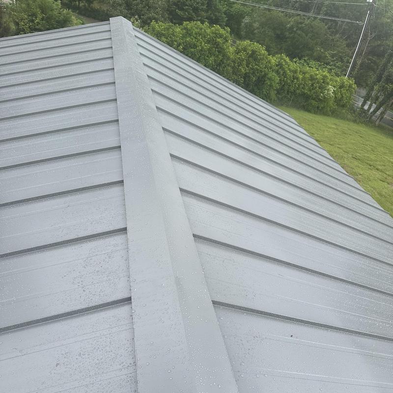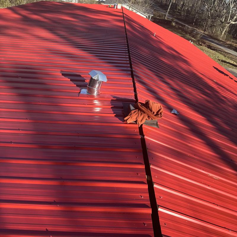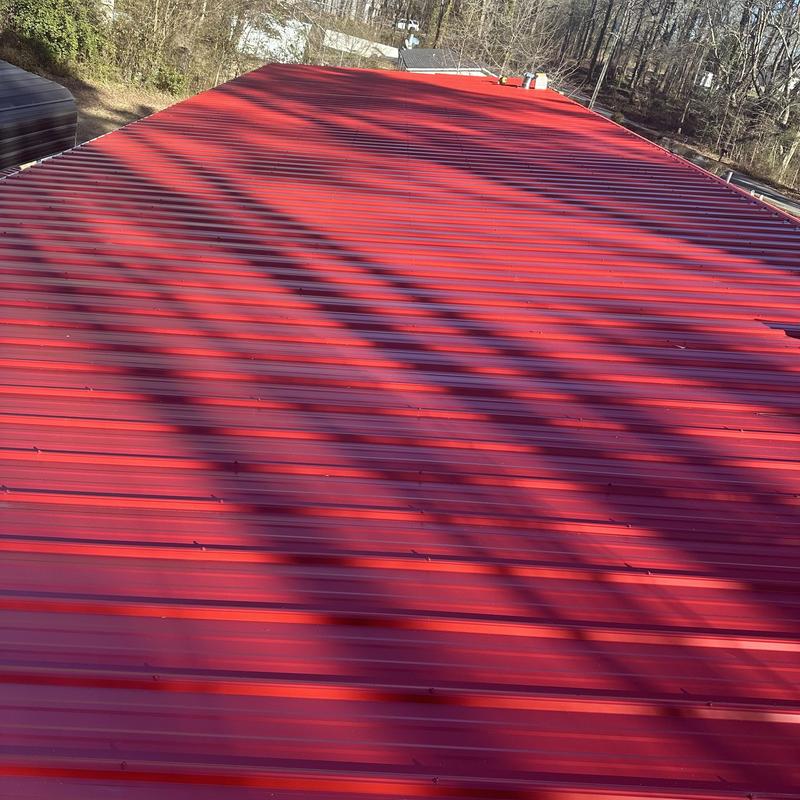 Consumer First Roofing replaced damaged metal roof panels and removed skylights, installing matching metal panels in their place. This repair followed roof damage caused by Hurricane Helene. The service took place in Landrum, South Carolina.