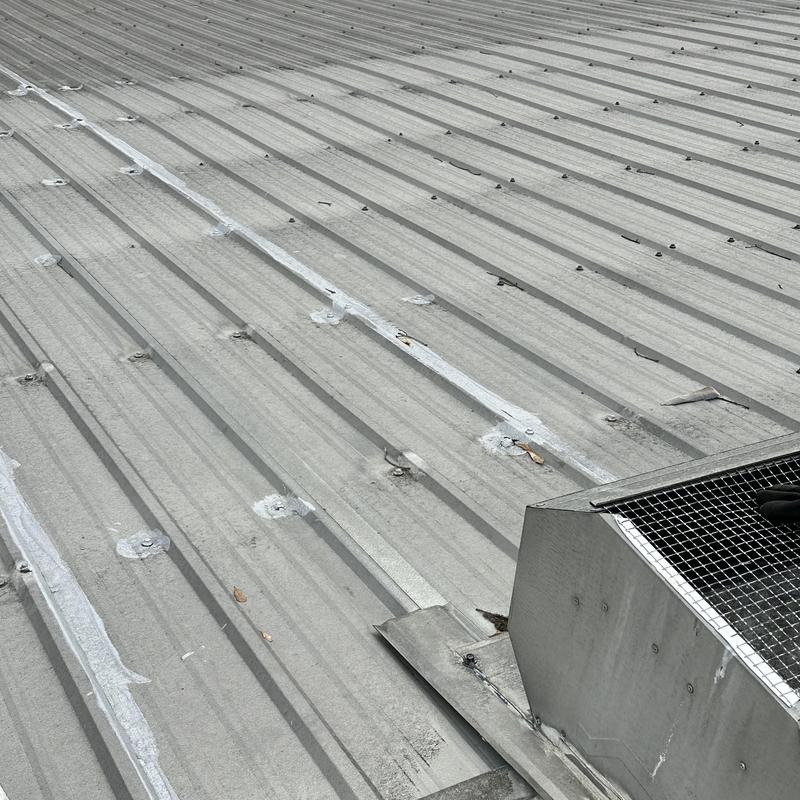 Consumer First Roofing replaced rusted screws on a metal roof to stop persistent leaks at a fire department in Spartanburg, South Carolina. The team identified the damaged fasteners as the leak source and completed the repair by installing new screws across the affected sections to restore the roof’s seal.