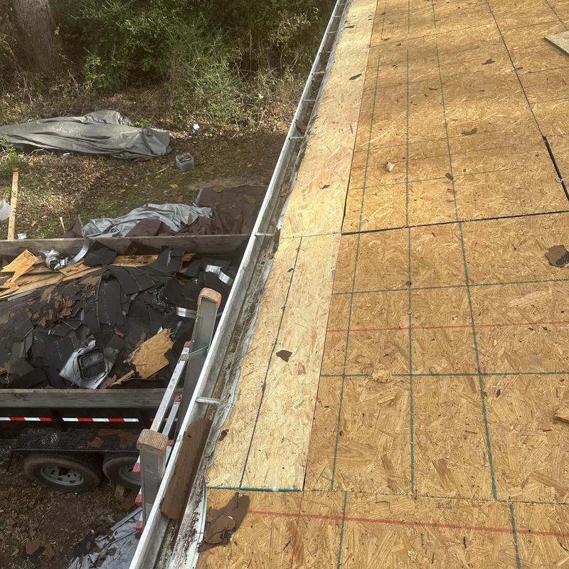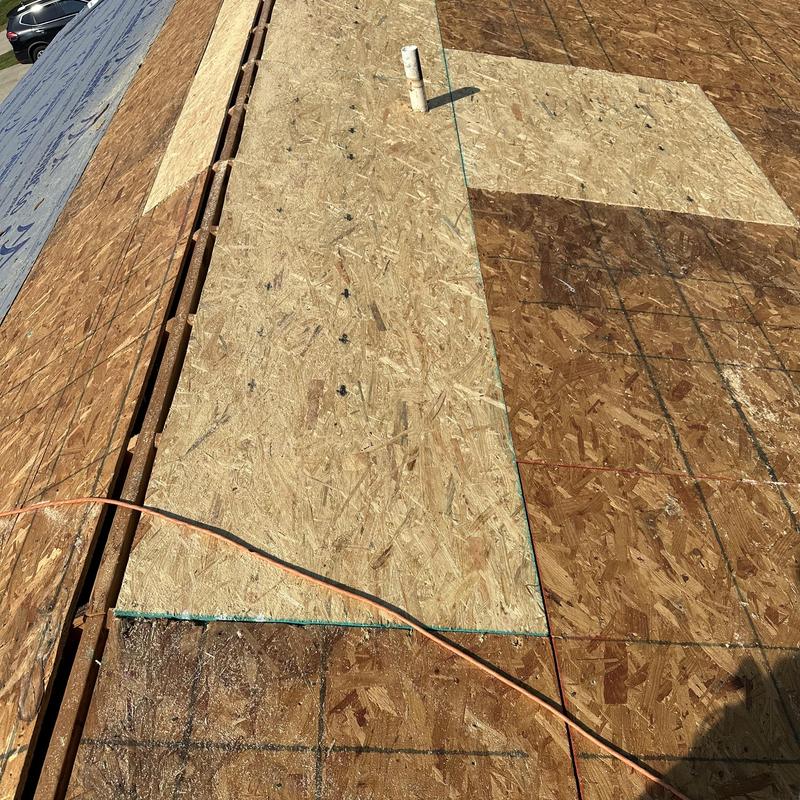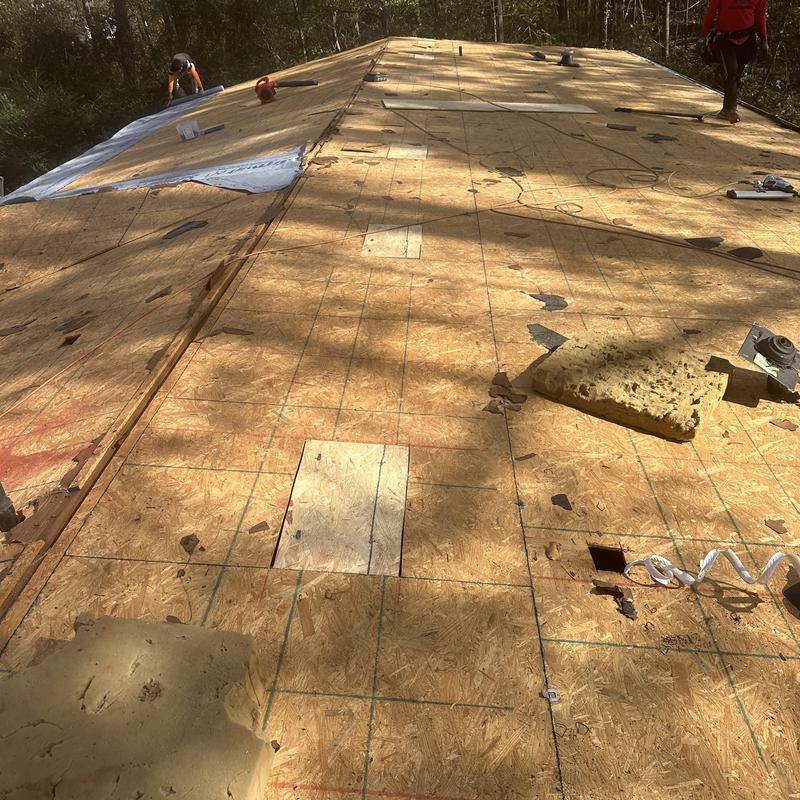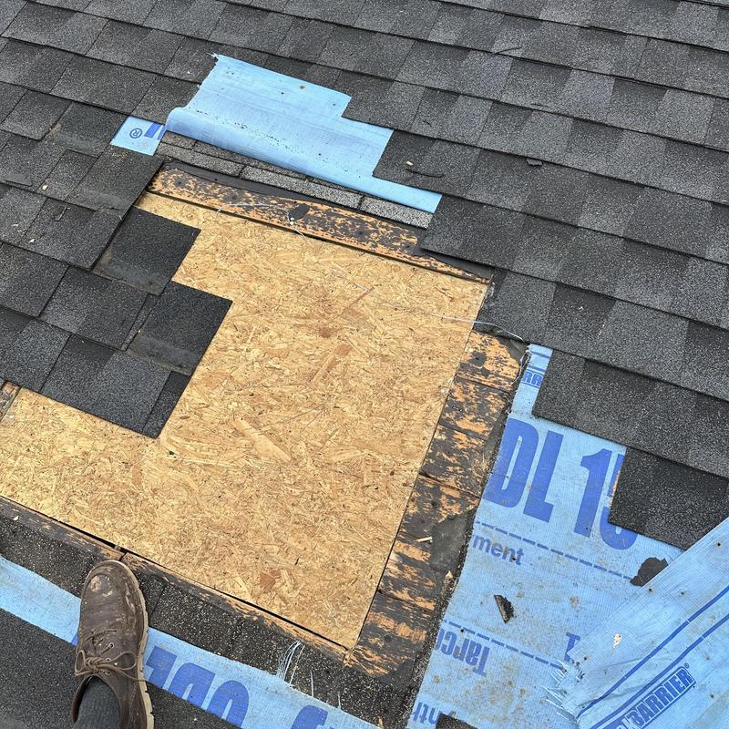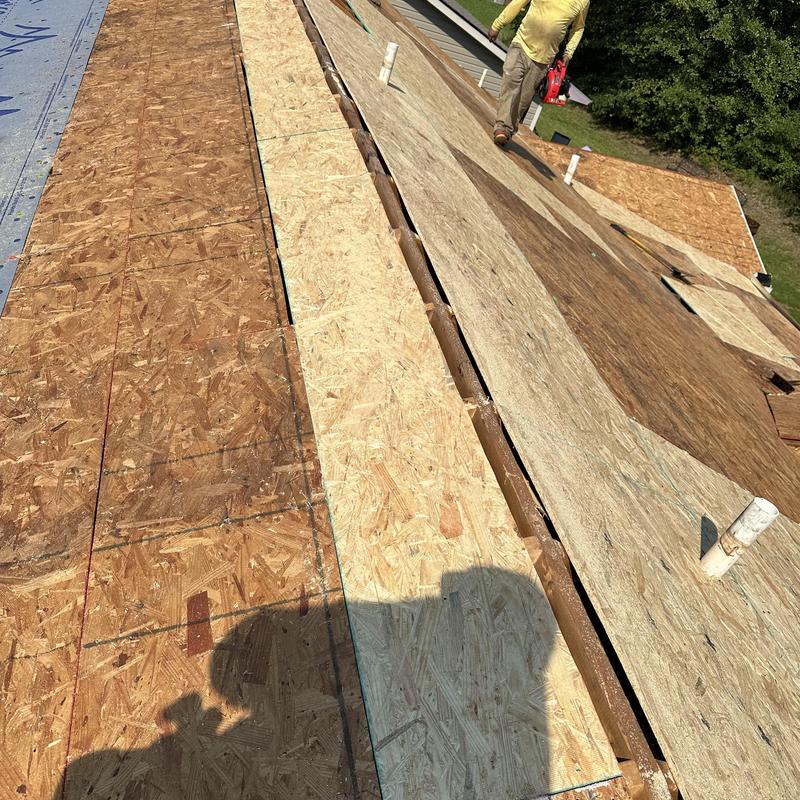 Consumer First Roofing repaired hurricane damage in Spartanburg, South Carolina. The team replaced damaged fascia boards and plywood and installed new shingles to restore the roof. This service addressed structural wear caused by Hurricane Helene and ensured weather resistance through targeted material replacement.