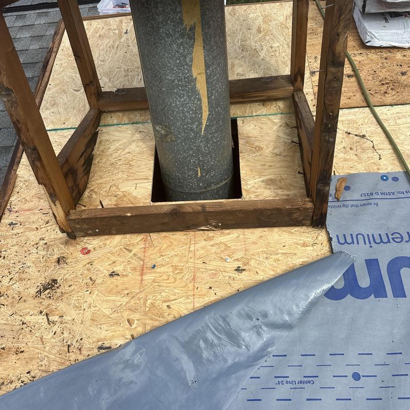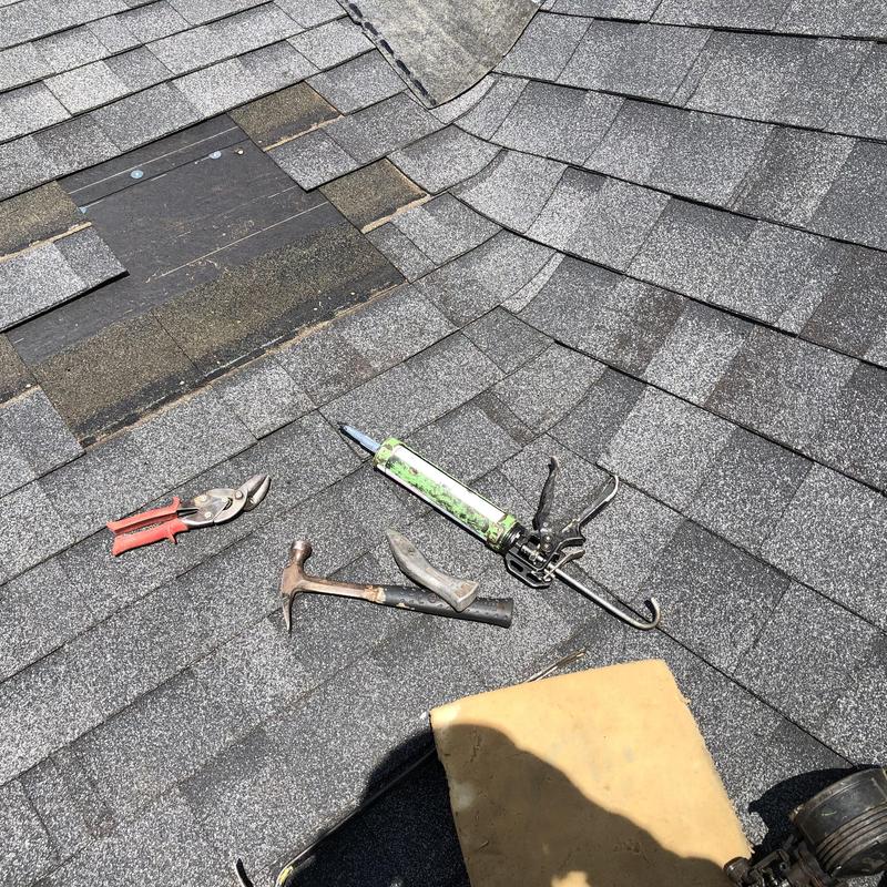 Consumer First Roofing replaced damaged shingles, installed two new pipe boots, and removed sections of rotten wood to restore the roof. The repairs ensured full roof functionality. Service completed in Spartanburg, South Carolina.