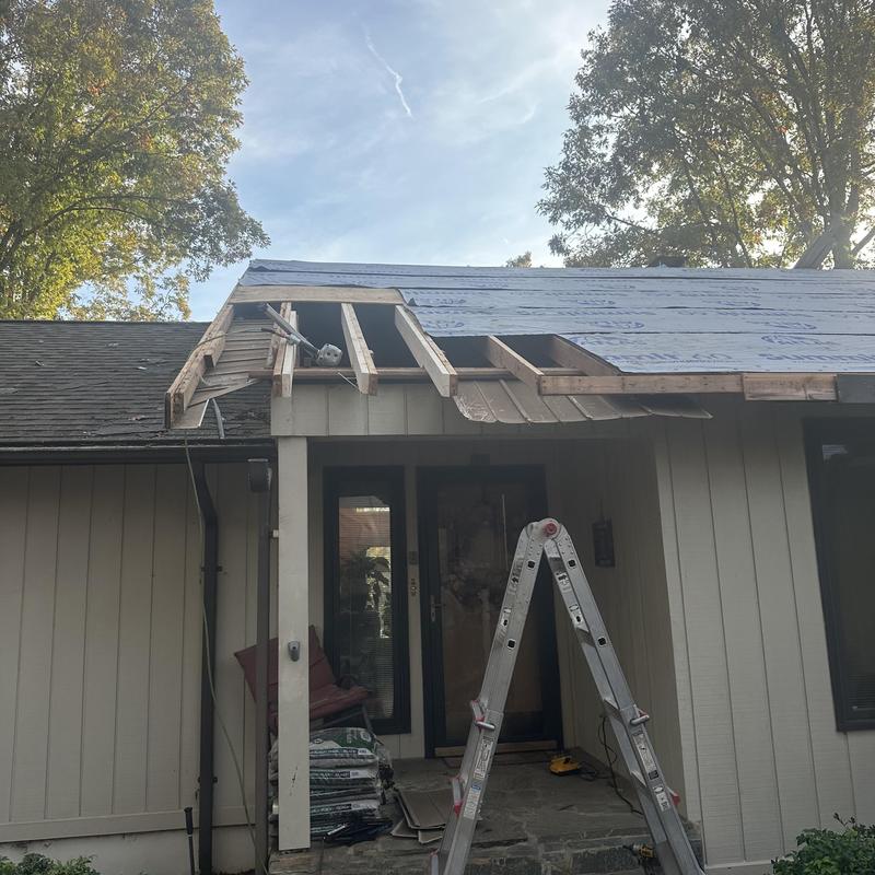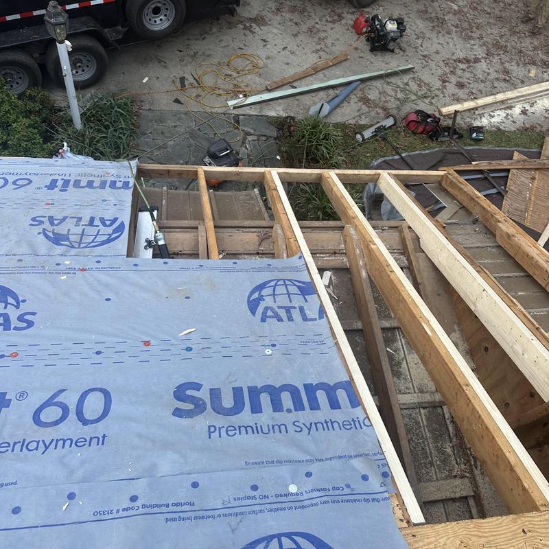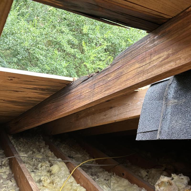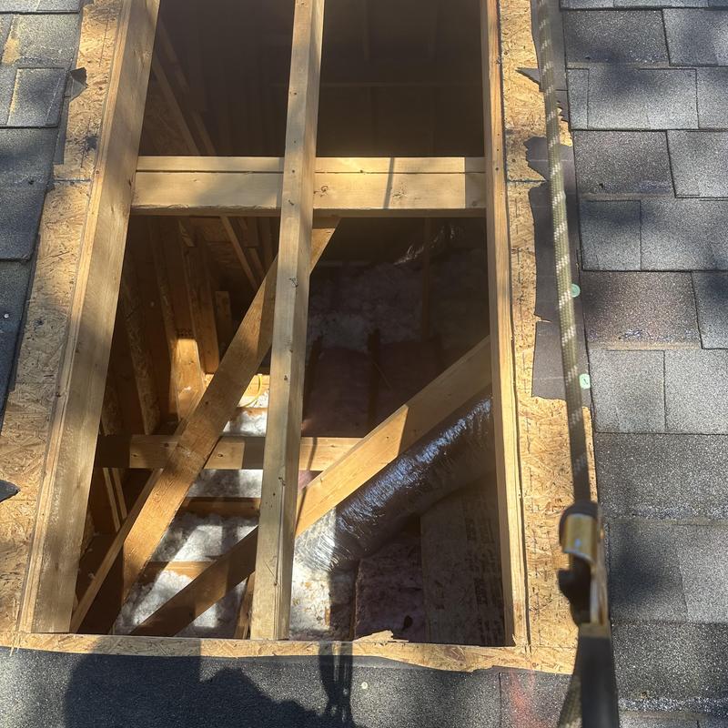 Consumer First Roofing replaced damaged rafters and installed new shingles after a fallen tree caused roof damage. This repair ensured the structure was safe and weatherproof. Project completed in Greenville, South Carolina.