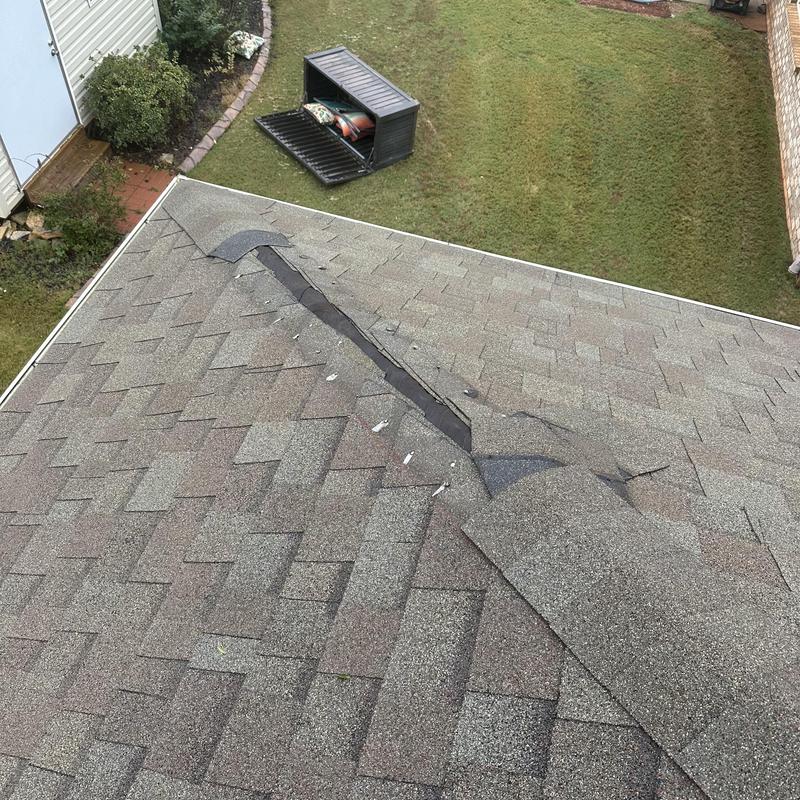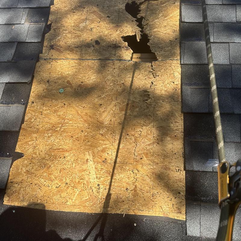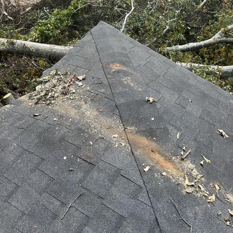 Consumer First Roofing repaired roof damage in Spartanburg, South Carolina, caused by a fallen tree after Hurricane Helene. The crew replaced the front slope of the roof and completed the work in two days. The homeowner was satisfied with the repair timeline and cost.