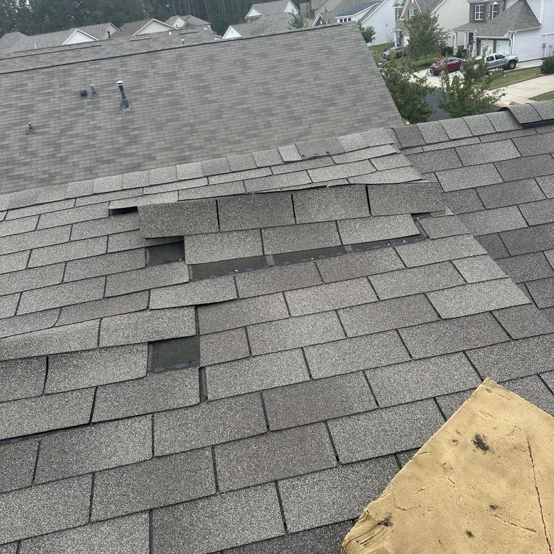 Consumer First Roofing replaced a blown-off ridge cap on a home in Inman, South Carolina. The team completed the roof repair the same day the customer called, preventing additional exposure to weather. This prompt response helped restore the roof's protection quickly and efficiently.