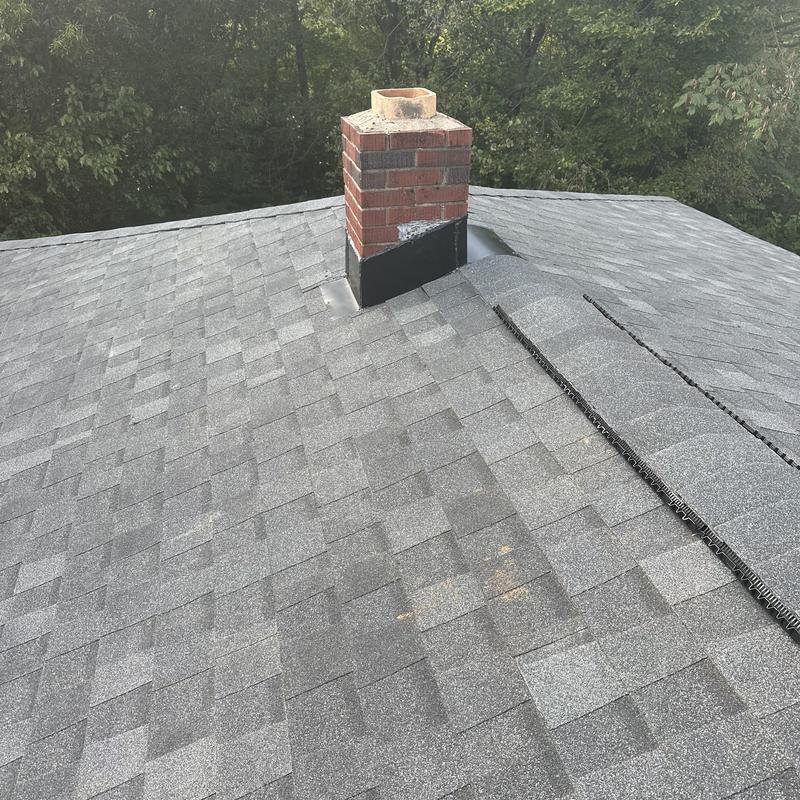 Consumer First Roofing replaced a damaged pipe boot and resealed the chimney and adjoining walls on a residential roof in Greer, South Carolina. This service helps prevent water leaks and extends the roof’s durability by securing common problem areas.