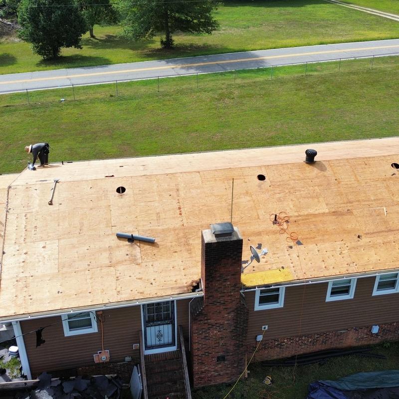 Consumer First Roofing replaced a damaged roof and rotted plywood on a home in Spartanburg, South Carolina. The roof had leaked for a year, causing structural issues. The crew removed the old materials and installed new wood and roofing in one day, restoring the property’s condition efficiently.